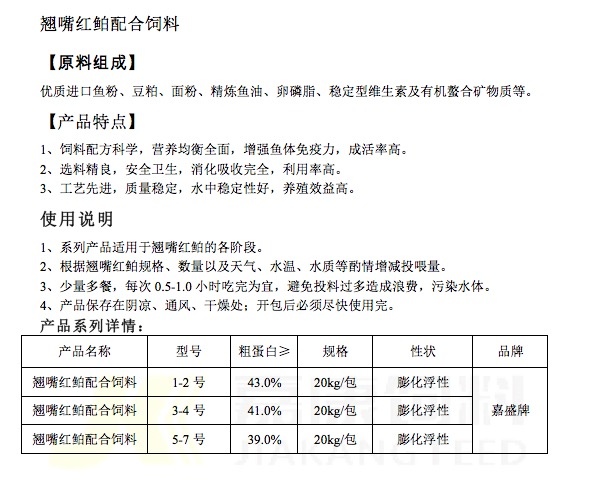 翹嘴紅鲌配合飼料